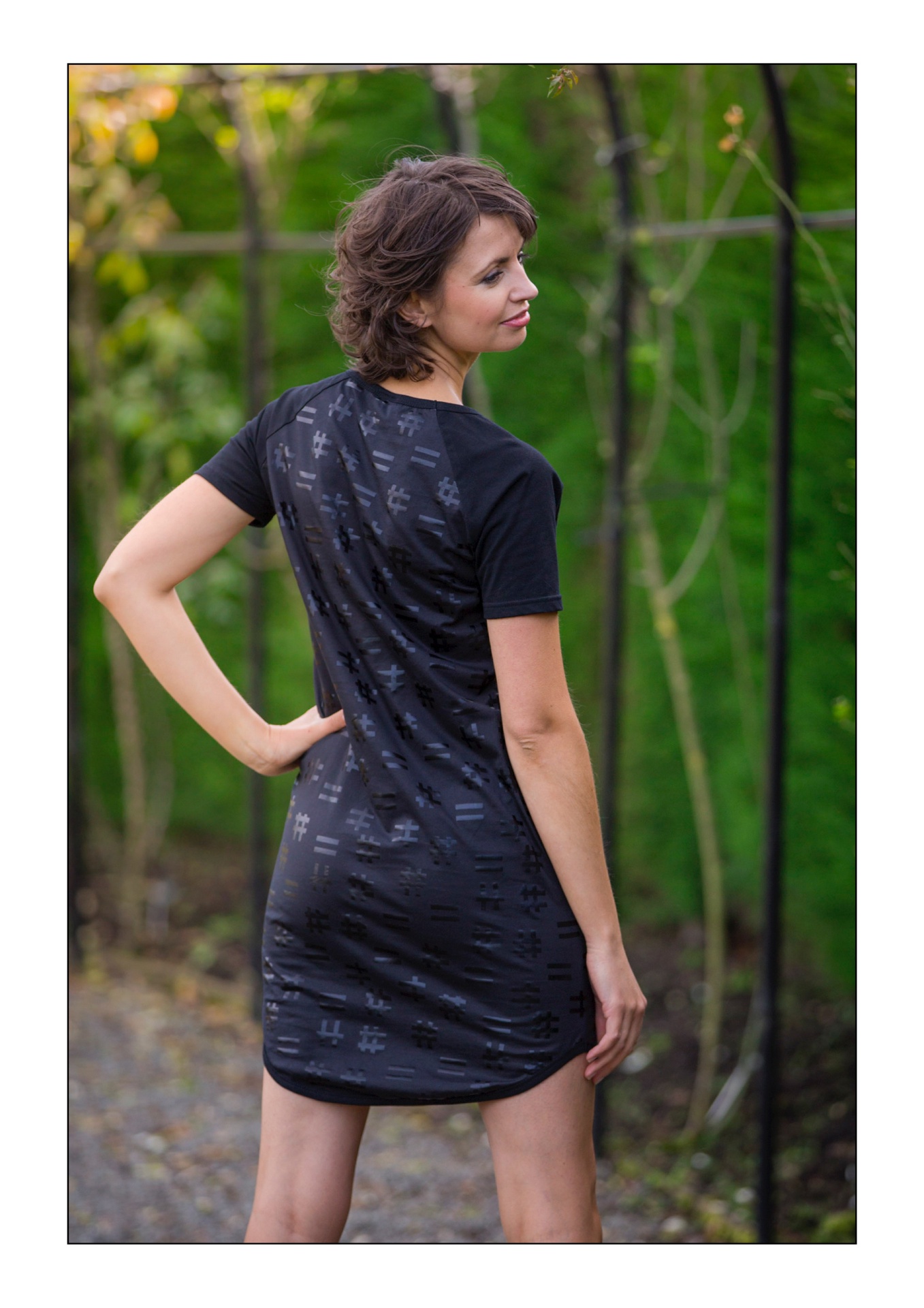 Cotton with hashtag print. Note print is delicate and requires cool wash and cool press on reverse.