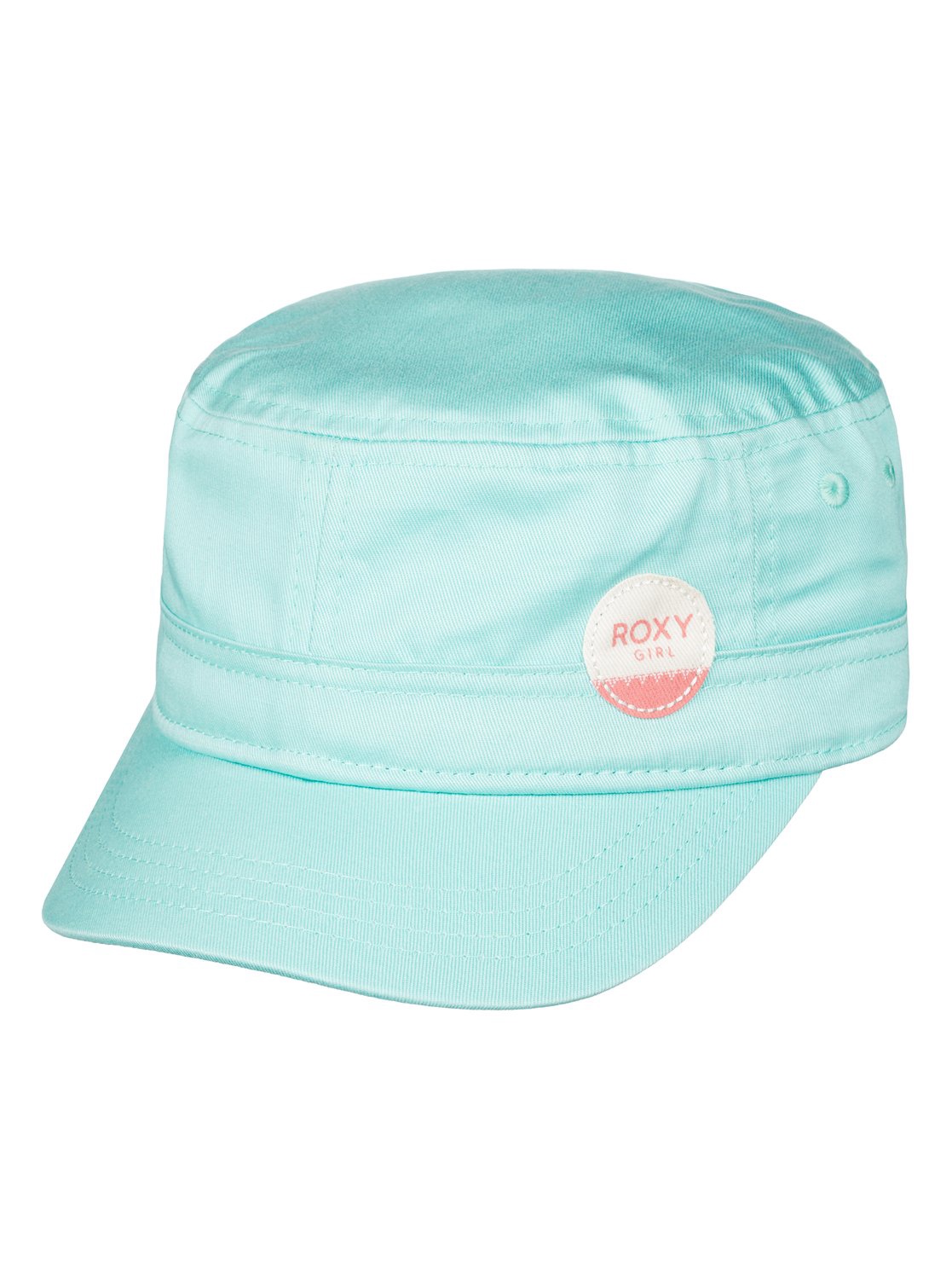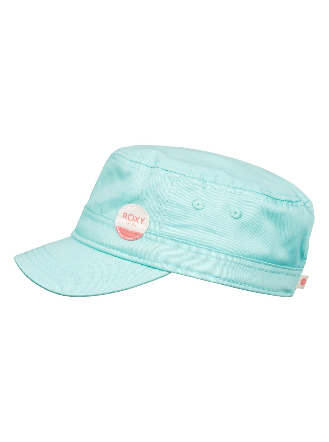 Cotton military cap, Roxy embroidered logo, adjustable back closure.