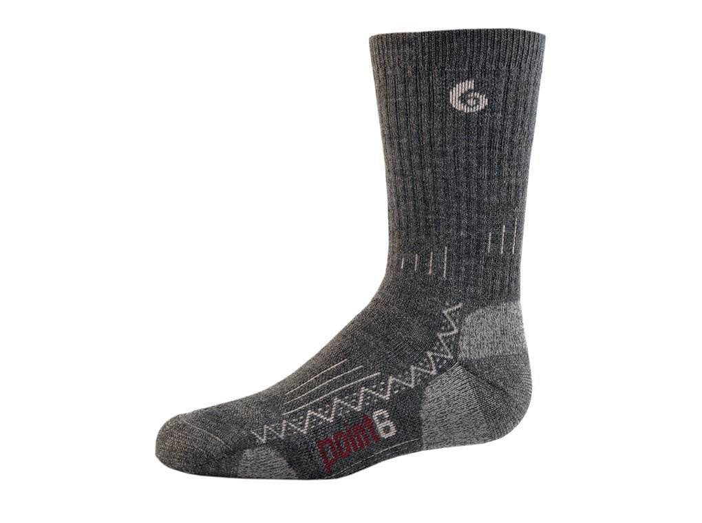 The hiking tech medium crew sock offers extra cushioning on the instep and around the leg to protect against pressure points from heavier footwear. The cozy wool cushioning next to the skin insulates the foot from hot spots.